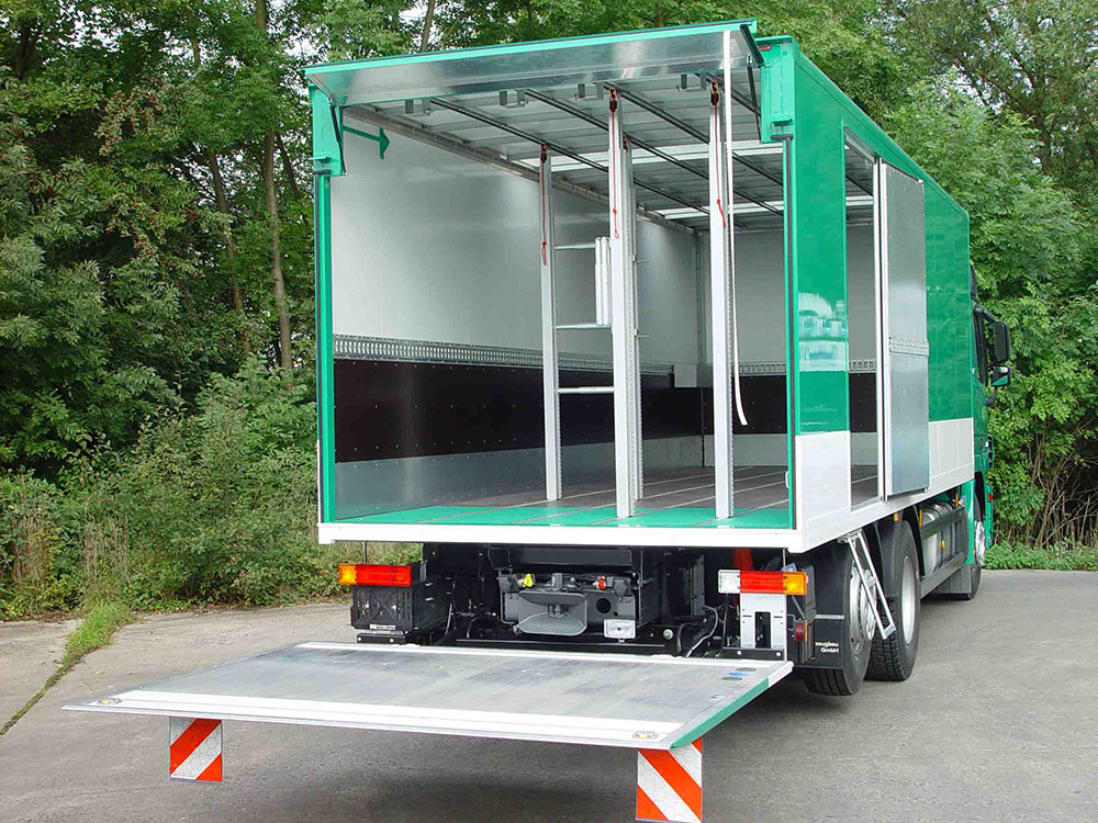 Zum Be- und Entladen werden außer der Hecköffnung durch Türen, Rollladen oder Ladebordwänden, individuelle Varianten in den Seitenwänden als Schiebetüren oder Klappenausführung eingesetzt.