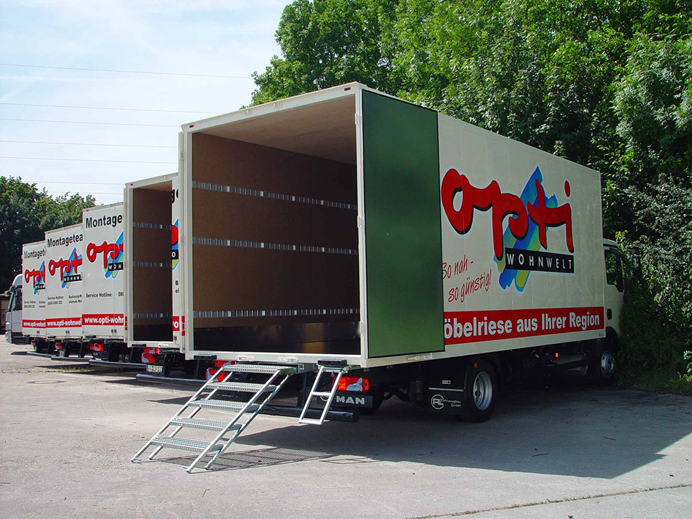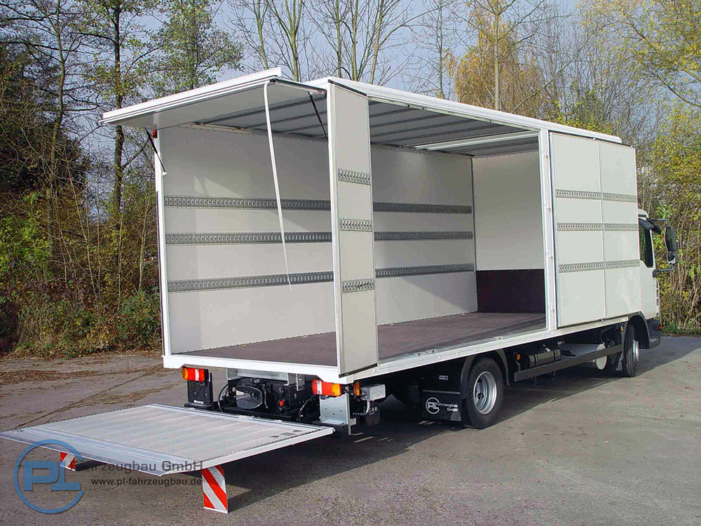 Zum Be- und Entladen werden außer der Hecköffnung durch Türen, Rollladen oder Ladebordwänden, individuelle Varianten in den Seitenwänden als Schiebetüren oder Klappenausführung eingesetzt.